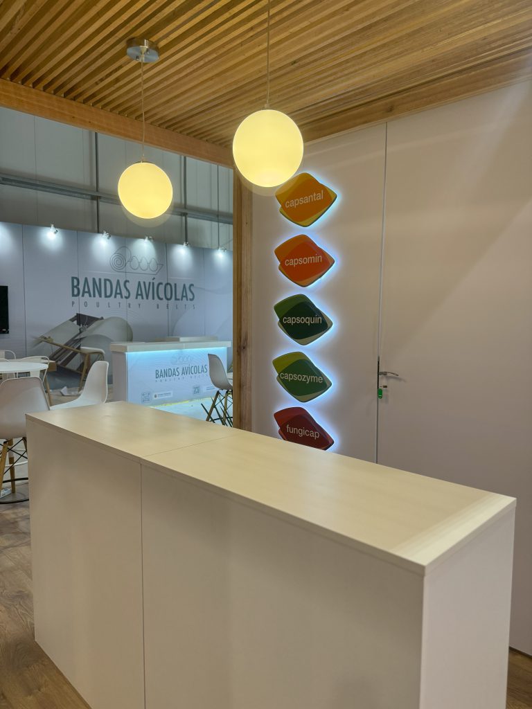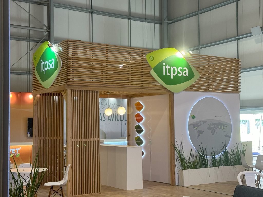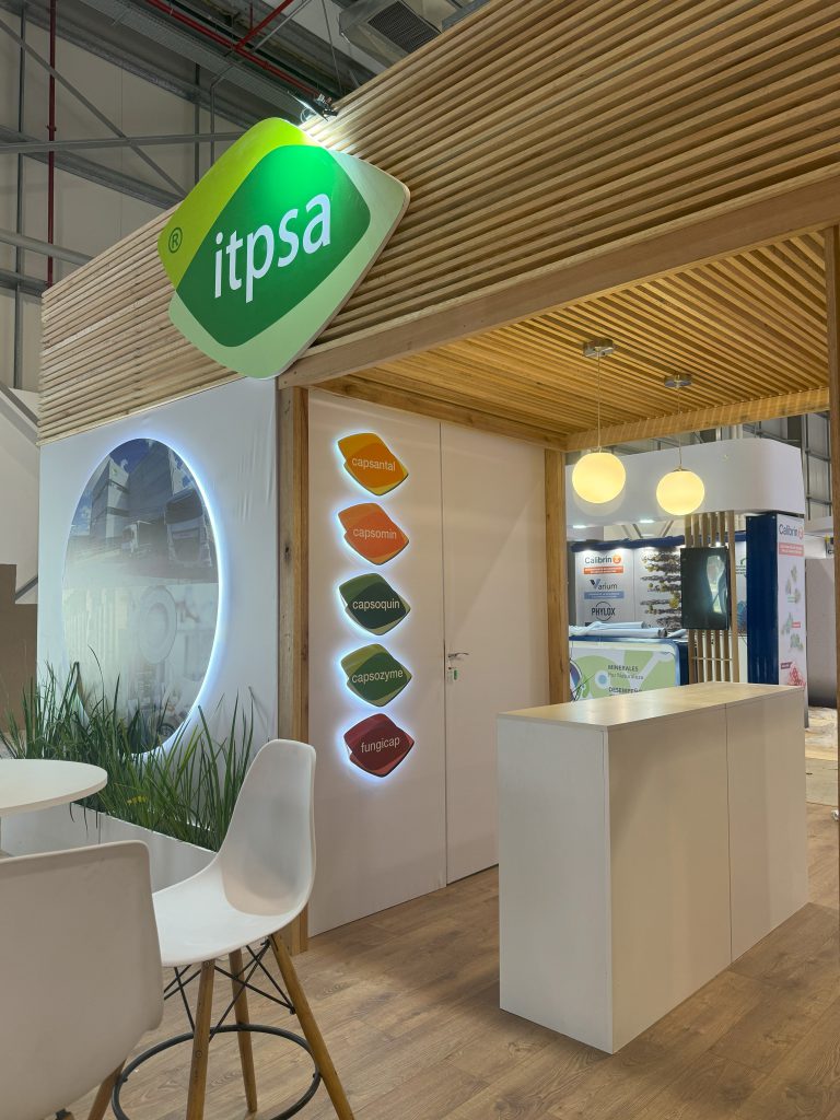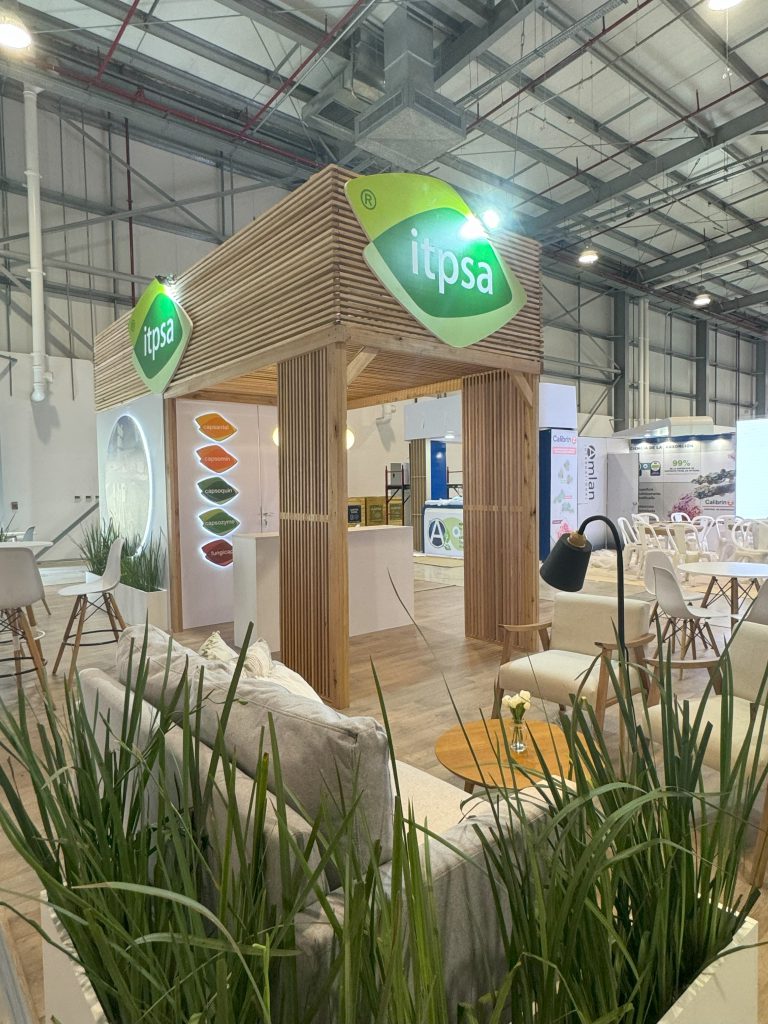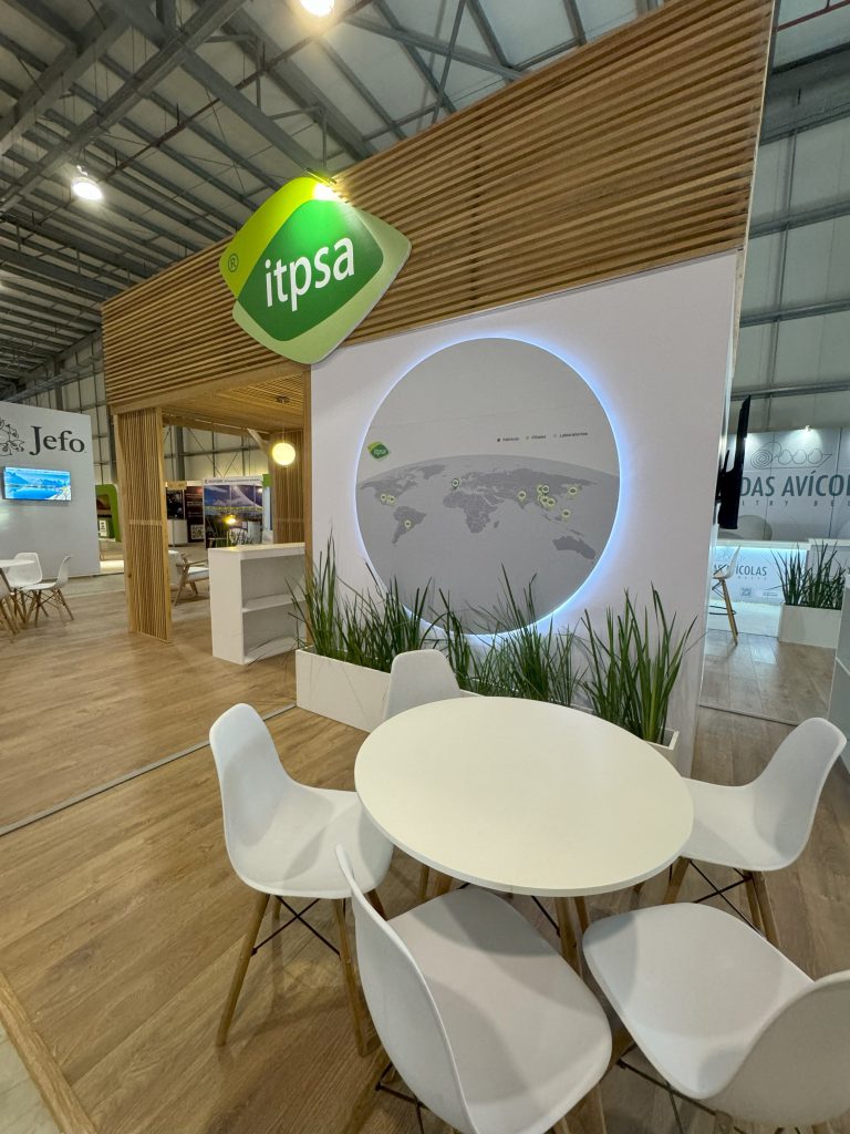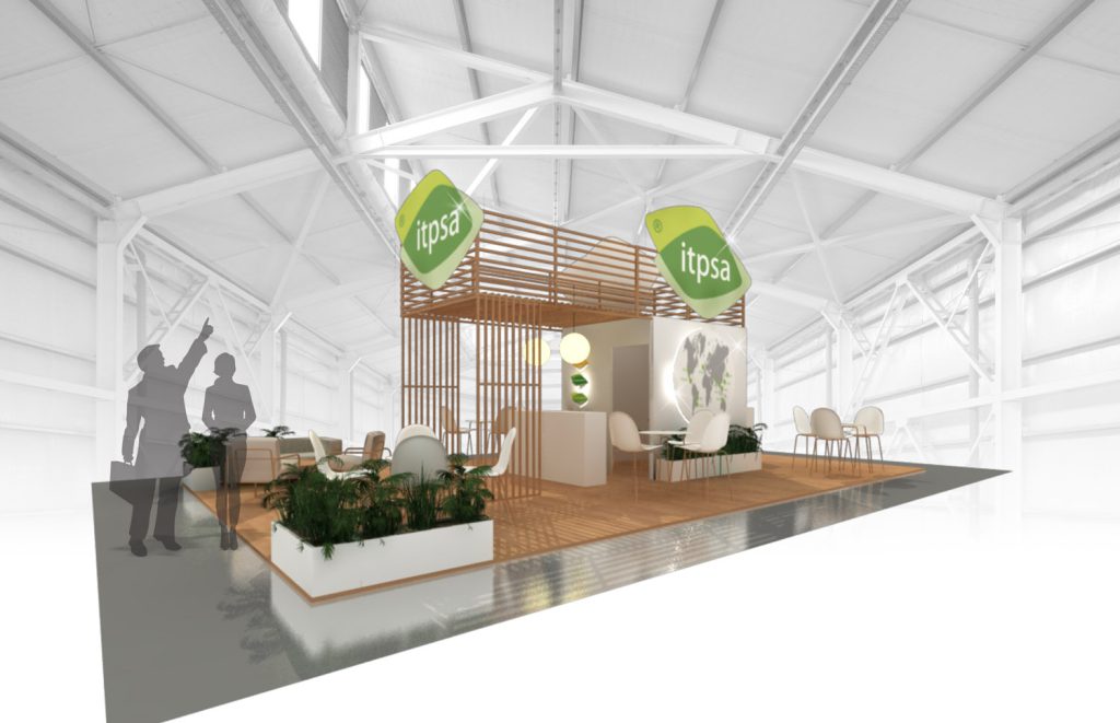 El stand de ITPSA se destaca por una propuesta arquitectónica limpia, cálida y contemporánea, que combina materiales naturales con un diseño funcional y bien distribuido.